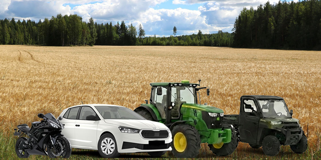 Lainan vakuutena voi olla myös muut ajoneuvot, kuten esim. traktorimönkijät, veneet, moottoripyörät ja muut rekisteröidyt ajoneuvot.